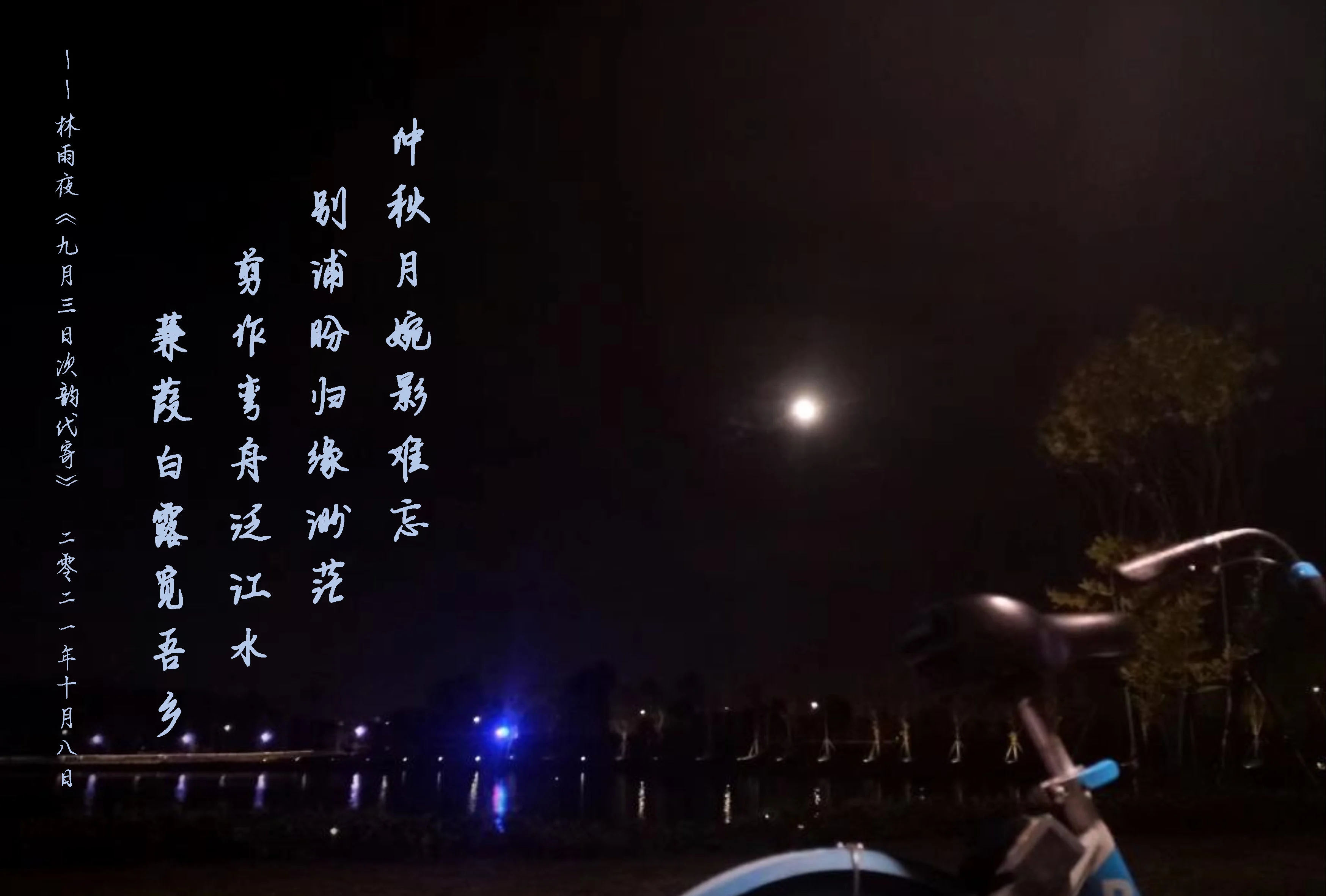 逸夫楼下晚风吹,白月半轮斜挂枝。